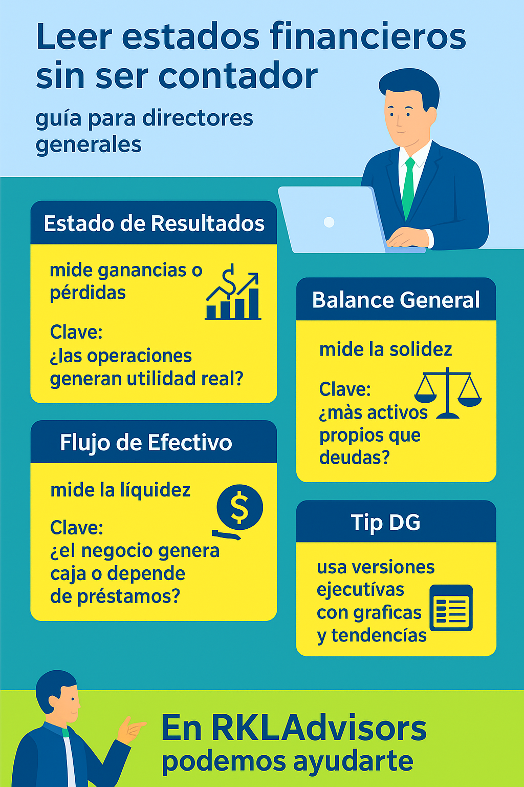 Uno de los mayores retos de un Director General es tomar decisiones estratégicas sin perderse en tecnicismos financieros. La buena noticia es que no necesitas ser contador para entender lo esencial de los estados financieros y utilizarlos como brújula para dirigir tu empresa.